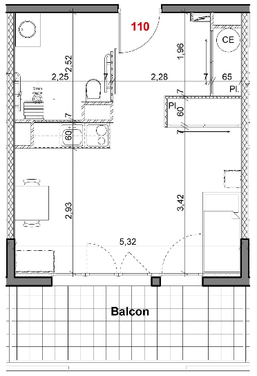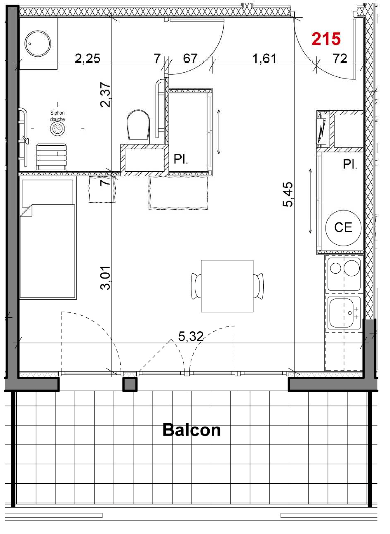 T1 (32 m2 + balcon) :