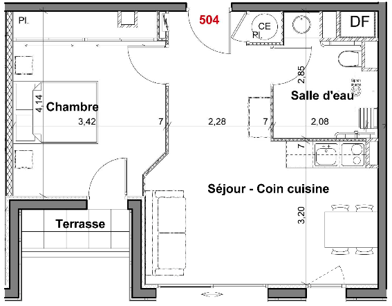 T2 (42 m2 + terrasse) :